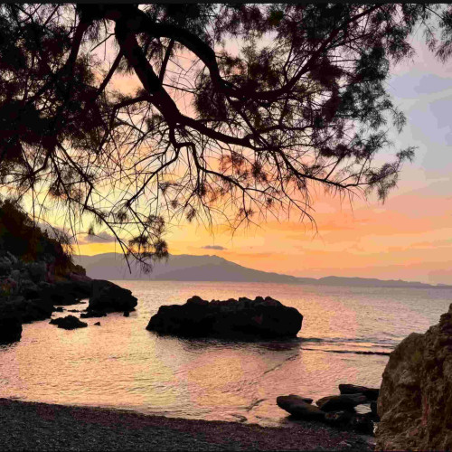 Nestled on the western coast of Crete, Ravdoucha Beach offers a peaceful escape with its crystal-clear waters and rugged rocky formations. Ideal for those seeking tranquility, it's a hidden gem perfect for swimming and relaxing.